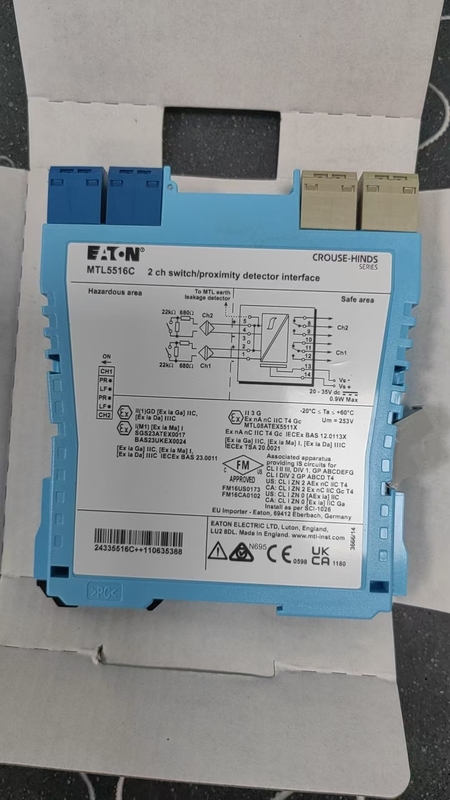 The MTL MTL5516C is a high-reliability 2-channel isolated barrier and switch/proximity detector interface, part of MTL’s acclaimed 5500 series of industrial safety components. Engineered to bridge hazardous and safe areas in industrial automation, this module enables safe control of two safe-area loads using switches or proximity detectors located in explosive or high-risk environments. It integrates advanced galvanic isolation, line fault detection (LFD), and user-configurable phase reversal, making it a cornerstone of safety-critical systems in process industries worldwide. With compact design and global hazardous area certifications, the MTL5516C upholds MTL’s legacy of protecting personnel, equipment, and processes in extreme conditions.