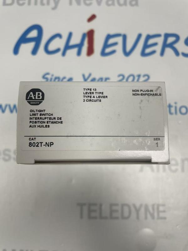 The Allen-Bradley (AB) 802T-NP is a rugged electromechanical limit switch belonging to the Bulletin 802T product family, engineered for reliable position sensing and machine control in harsh industrial environments. Designed with NEMA Type 4 and 13 oiltight construction, this non-plug-in switch delivers consistent performance against oil, dust, and moisture, making it a trusted choice for high-speed production equipment and heavy-duty automation systems. Its spring-return lever design and dual-direction operation ensure precise actuation feedback, supporting critical safety and operational control across multiple industries.